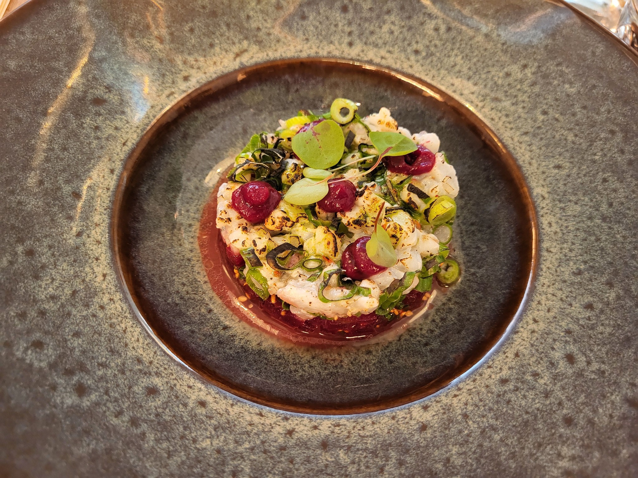 La carta evoluciona con las estaciones del año y la inspiración del chef Mickaël Falotte, que viene directamente de cocinas con estrellas Michelin, que combina habilidad, técnica y creatividad; el resultado es una selección de platos que hacen la boca agua y que esconden sabores impensables, minuciosamente presentados.