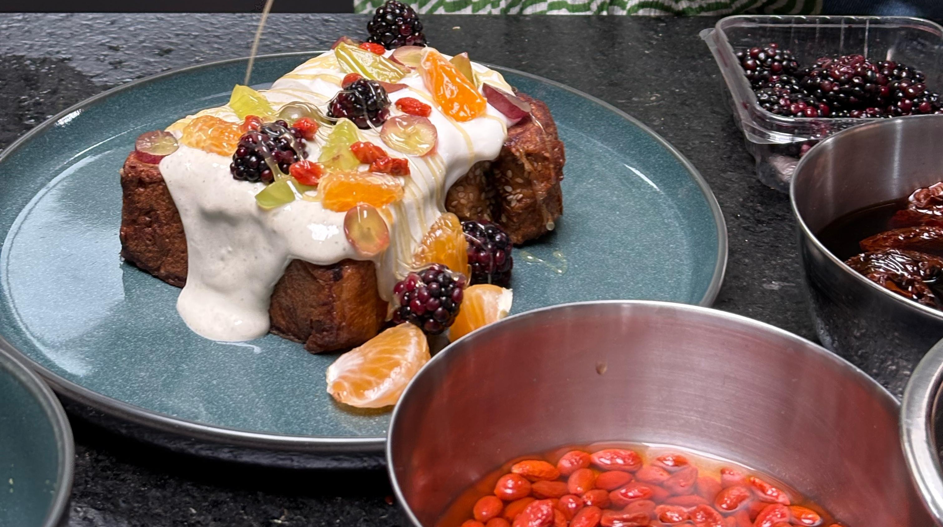 French Toast Integral de Coco, Mandarina y Yogur de Matcha