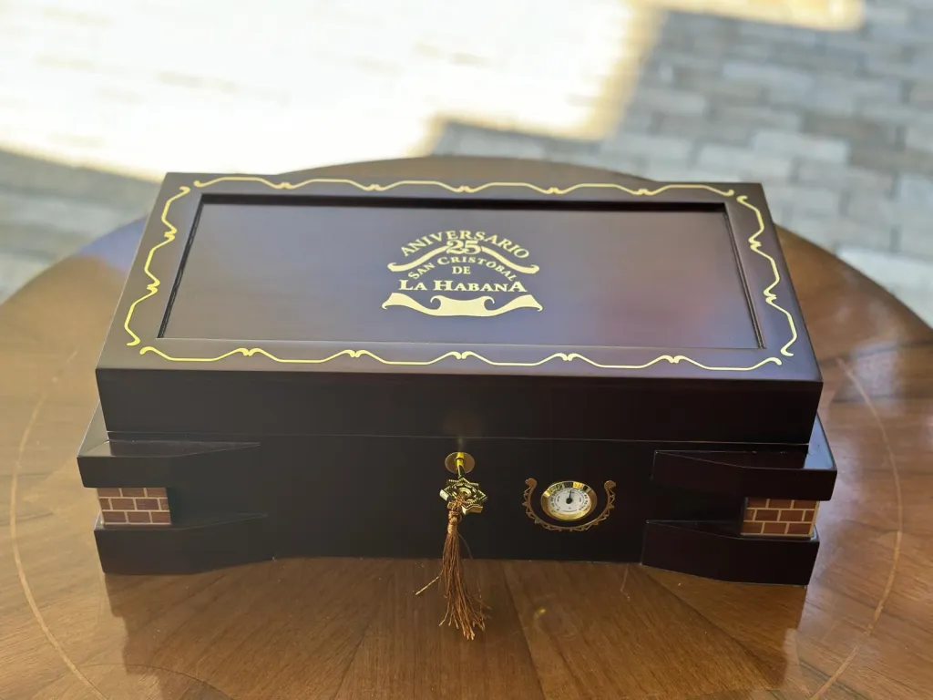 “25 aniversario” es una producción exclusiva y limitada de 200 humidores que se comercializan en el marco del Festival del Habano, en homenaje al 25 aniversario de la marca San Cristóbal.